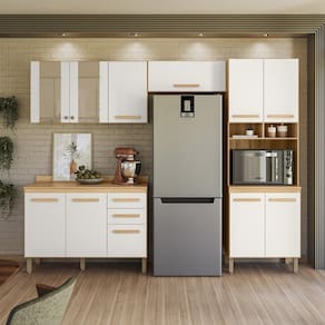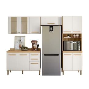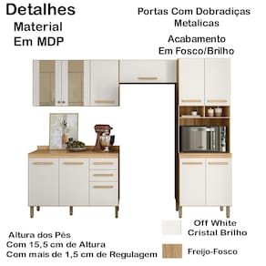 A Cozinha Modulada 17009 tem o acabamento refinado e visual sofisticado. Estrutura em MDP, com caixa de 12 mm e frente em 15 mm, e excelente acabamento em Fosco/Brilho. Composto por 11 portas, sendo 02 portas de vidros, com dobradiças metálicas e pistão a gás. Conta também com prateleiras internas e 02 gavetas com corrediças metálicas, puxadores em MDF. Paneleiro com nicho e espaço para micro-ondas. Balcão 1,20 com tampo. Acompanha pés de 15,5 cm com regulagem de 1,5 cm de altura. Estes móveis chegarão em sua casa separados em 06 volumes.