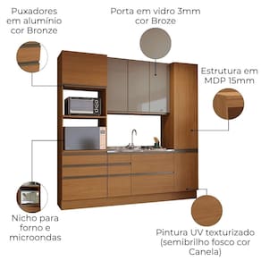 Cozinha modulada Maxxi com 4 peças: funcionalidade, resistência e acabamento moderno para o seu dia a dia. Composta por 1 armário aéreo com 3 portas (4 prateleiras internas), 1 Torre quente para 2 fornos, 1 porta basculante e 3 gavetas (sendo 1 gavetão), 1 paneleiro com 2 portas e (4 prateleiras internas), 1 balcão para pia de 120 cm (NÃO ACOMPANHA PIA) com 1 porta basculante, 4 gavetas (sendo 2 gavetões). Todos os módulos são produzidos 100% em MDP de 15 mm com acabamento UV texturizado fosco. O conjunto conta com puxadores em alumínio, dobradiças metálicas de 35 mm com amortecedor, corrediças telescópicas nas gavetas, pistão a gás nas portas basculantes e sistema de montagem flex (podendo ser instalado suspenso ou com rodapé). Ideal para quem busca uma cozinha funcional, durável e com visual contemporâneo.Este Conjunto chegará em sua casa separado em 07 volumes.