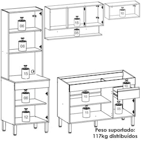 Cozinha Modulada 4 Peças, estilo moderno em módulos que se adaptam ao seu espaço! Produzido em MDP (15mm) com acabamento em pintura UV texturizada. Composta por 09 portas totais (sendo uma delas basculante e superiores com sistema passante), gaveta com corrediças telescópicas, nicho decorativo e nicho para microondas/forno, prateleiras internas, passa fio embutido e puxadores em perfil alumínio (portas inferiores). Os pés reguláveis são em plástico resistente.