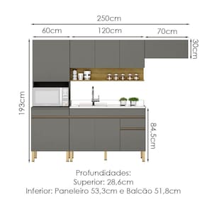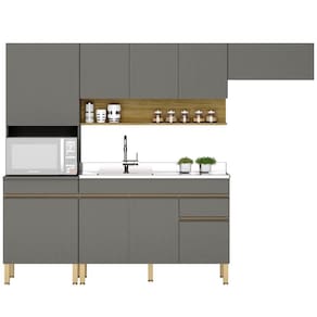 Cozinha Modulada 4 Peças, estilo moderno em módulos que se adaptam ao seu espaço! Produzido em MDP (15mm) com acabamento em pintura UV texturizada. Composta por 09 portas totais (sendo uma delas basculante e superiores com sistema passante), gaveta com corrediças telescópicas, nicho decorativo e nicho para microondas/forno, prateleiras internas, passa fio embutido e puxadores em perfil alumínio (portas inferiores). Os pés reguláveis são em plástico resistente. PIA/TAMPO NÃO INCLUSOS. Este produto será entregue em 05 volumes.