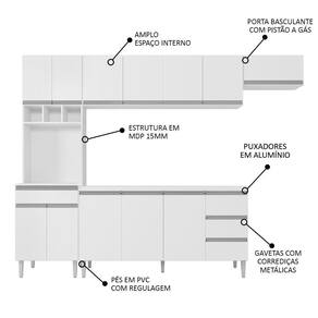 Conteúdo da Embalagem: 1 Balcão 160cm, 1 Armário Aéreo 160cm, 1 Armário Aéreo 60cm, 1 Paneleiro.