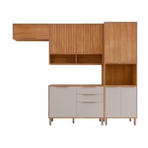 A Cozinha Modulada Divina possui 4 peças, é composta por Torre Quente, Aéreo 120cm com 02 portas, Balcão 120cm com 02 portas e 02 gavetas e Aéreo 80cm. Possui altura total de 224 cm e largura total de 270 cm e profundidade de balcão de 47 cm. Produzida 100% em MDF com detalhes ripados nas portas dos aéreos. Esta cozinha faz parte da coleção Inspirar e Trasnformar da MGM Móveis e possui estilo moderno, funcional e prático para inspirar e trasnformar seu dia a dia. Seus puxadores são feitos em ABS na cor Gold que trás um toque sofisticado para sua cozinha. Possui dobradiças 0,35cm com sistema Soft Close nas portas que permitem um fechamento suave e nas portas basculante possui além das dobradiças, pistão a gás para proporcionar uma maior abertura e as gavetas possuem corrediças telescópicas. Acabamento da Prateleira: Pintura Texturizada UV Escala de Brilho da Prateleira: Fosco Acabamento da Gaveta: Pintura Texturizada UV Escala de Brilho da Gaveta: Fosco Material do Puxador da Gaveta: ABS Acabamento da Porta: Pintura Texturizada UV Escala de Brilho da Porta: Fosco Material do Puxador da Porta: ABS Acabamento: Pintura UV Acabamento dos Pés: Pintura Acompanha Rodapé Decorativo: Não Acompanha Tampo: Sim Altura dos Pés: 17 cm Ambiente Principal: Cozinha Balcão Suporta Pia: Não codigo_ean: 7900288141279 Complexidade da Montagem: Média: pode ser montado por mais de uma pessoa e/ou necessite de maior conhecimento para montagem Cor: Cinamomo/Off White Cor do Produto: Cinamomo/Off White Cor Flex: Não Cor Interna: Cinamomo Escala de Brilho: Fosco Espessura do Material da Estrutura: 15 mm Espessura do Tampo: 15 mm Gaveta com Chave: Não Itens Inclusos: 1 Cozinha Completa, Manual de Montagem e Kit Ferragens Linha ou Coleção: Inspirar e Transformar Manual de Especificação Técnica: https://cdn2.madeiramadeira.com.br/atributo/mgm-moveis/2903739-5285-17465463477986.pdf Manual de Montagem e Instalação: https://cdn2.madeiramadeira.com.br/atributo/mgm-moveis/2903738-5285-17465463429311.pdf Marca: MGM Móveis Material da Corrediça: Metálica Material da Dobradiça/Corrediça da Porta: Metálica Material da Gaveta: MDF Material da Porta: MDF Material da Prateleira: MDF Material do Fundo: HDF Material do Tampo: MDF Material dos Pés: ABS Medida de cada item (A x L x P): Torre Quente 224 x 70 x 47; Aéreo 90 x 120 x 32; Balcão 84 x 120 x 47; Aéreo 34 x 80 x 32 modular: Sim Montagem Flex: Não Necessita Montagem: Sim O Balcão Acompanha Pia: Não Origem do Produto: Nacional Pés Reguláveis: Sim Peso: 149,5 kg Peso Máximo por Gaveta: 5 kg Peso Máximo por Prateleira: 5 kg Possui Pés: 09 Possui Portas: Sim Possui Prateleiras: Sim Possui recorte para Cooktop: Não Possui Rodízio: Não Possui Vidro: Não Recomendações de Uso, Manutenção e Limpeza: Utilizar pano umidecido para limpeza Sapatas Niveladoras: Sim Sistema de Montagem: Parafusos, Cavilhas e Mnifix Suporta Até (kg): 50 kg Tipo de Corrediça da Gaveta: Telescópica Tipo de Dobradiça da Porta: Soft close Tipo de Porta: Misto (Bater e Basculante) Tipo de Puxador da Gaveta: Externo Tipo de Puxador da Porta: Externo