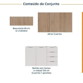 A Cozinha Ipanema é um móvel com design moderno, feito com material de qualidade para garantir alta durabilidade e resistência contra umidade. conferem versatilidade e praticidade no dia a dia, permitindo armazenar diferentes objetos. Uma opção de móvel prático e funcional para quem busca organização e estilo em sua casa. Altura do Conjunto: 69.5 cm Ambiente Principal: Cozinha codigo_ean: 7909903352380 Cor: Acácia/Branco Cor do Produto: Acácia/Branco Informação Complementar: 1x Armário Aéreo 3 Portas 120cm Puxador 150mm Ipanema Acácia/BrancoLargura: 120 cmAltura: 69,5 cmPeso: 31,44 kgProfundidade: 36,7 cmNecessita Montagem: Sim1x Balcão Pia 2 Portas 4 Gavetas sem Tampo Ipanema BrancoLargura: 120 cmAltura: 69,5 cmPeso: 41,14 kgProfundidade: 51,5 cmNecessita Montagem: Sim2x Armário Aéreo 1 Porta Basculante Ipanema Acácia/BrancoLargura: 90 cmAltura: 34,7 cmPeso: 13,15 kgProfundidade: 36,7 cmNecessita Montagem: Sim Possui Portas: Sim