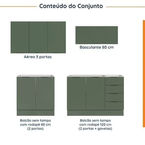 1x Balcão Pia 120cm sem Tampo com Rodapé Puxador 150mm Ipanema Verde Folha/Branco Largura: 120 cm Altura: 83,5 cm Peso: 42,01 kg Profundidade: 51,5 cm Necessita Montagem: Sim
