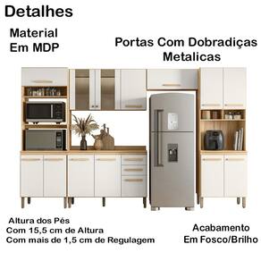 A Cozinha Modulada 17011 Nicioli tem o acabamento refinado e visual sofisticado. Estrutura em MDP, com caixa de 12 mm e frente em 15 mm, e excelente acabamento em Fosco/Brilho. Composto por 14 portas, sendo 02 portas de vidros, com dobradiças metálicas e pistão a gás. Conta também com prateleiras internas e 02 gavetas com corrediças telescópicas, puxadores em MDF. Paneleiros com nichos e espaço para micro-ondas. Balcão 1,20cm com tampo. Acompanha pés de 15,5 cm com regulagem de 1,5 cm de altura. Estes móveis chegarão em sua casa separados em 06 volumes.