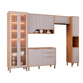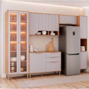 Fabricados 100% em MDF com acabamento em Pintura UV, os modulados possuem portas embutidas com dobradiças metálicas com sistema slow motion, pistão a gás nas portas basculantes, gavetas com corrediças telescópicas, puxadores e pés em ABS na cor gold. Em alguns modulados, tem opção de porta com vidro reflecta que garantem um toque sofisticado e ir além para inspirar e transformar sua cozinha! Acabamento da Prateleira: Pintura UV Escala de Brilho da Prateleira: Fosco Acabamento da Gaveta: Pintura UV Escala de Brilho da Gaveta: Fosco Material do Puxador da Gaveta: ABS Acabamento da Porta: Pintura UV Escala de Brilho da Porta: Fosco Material do Puxador da Porta: ABS Acabamento dos Pés: Pintura Acompanha Rodapé Decorativo: Não Acompanha Tampo: Não Altura dos Pés: 17 cm Altura Máxima dos Pés: 17.0000 Ambiente Principal: Cozinha Balcão Suporta Pia: Não codigo_ean: 7900288357250 Complexidade da Montagem: Média: pode ser montado por mais de uma pessoa e/ou necessite de maior conhecimento para montagem Cor: Cinamomo/Platina Cor do Produto: Cinamomo/Platina Cor Interna: Cinamomo Escala de Brilho: Fosco Espessura do Material da Estrutura: 15 mm Gaveta com Chave: Não Informações Complementares: Portas com detalhe em baixo relevo Itens Inclusos: 1 Cozinha Compacta, Manual de Montagem e Kit Ferragem Linha ou Coleção: Celeste Manual de Montagem e Instalação: https://product-hub-prd.madeiramadeira.com.br/386784316/documents/07ab6119-c749-4555-9b53-9c1ae5668cff3445050528517734264437942.pdf Marca: MGM Móveis Material da Corrediça: Metálica Material da Dobradiça/Corrediça da Porta: Metálica Material da Gaveta: MDF Material da Porta: MDF Material da Prateleira: MDF Material do Fundo: HDF Material dos Pés: ABS Medida de cada item (A x L x P): Cristaleira 224 x 70 x 47; Balcão: 84 x 120 x 47; Aéreo: 78 x 120 x 32; Aéreo: 34 x 80 x 32; Torre 224 x 37 x 47 modular: Sim Necessita Montagem: Sim O Balcão Acompanha Pia: Não Origem do Produto: Nacional Pés Reguláveis: Sim Peso: 186,5 kg Peso Máximo por Gaveta: 5 kg Peso Máximo por Prateleira: 5 kg Possui Pés: 13 Possui Portas: Sim Possui Prateleiras: Sim Possui recorte para Cooktop: Não Possui Rodízio: Não Possui Vidro: Não Produto Montado: Sim Recomendações de Uso, Manutenção e Limpeza: Utilizar pano umidecido Sapatas Niveladoras: Sim Sistema de Montagem: Parafusos, Cavilha e Minifix Tamanho Indicado da Pia: 120 x 47 Tamanho Indicado do Tampo: 120 x 47 Tipo de Corrediça da Gaveta: Metálica Telescópica Tipo de Dobradiça da Porta: Soft close Tipo de Puxador da Gaveta: Externo Tipo de Puxador da Porta: Externo