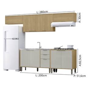 Cozinha Montada: Altura: 210,5 cm | Comprimento Superior: 280 cm | Comprimento Inferior: 200 cm | Profundidade: 51,6 cm