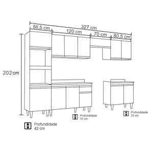Peso Suportado: Paneleiro: 60 Kg / Armário Aéreo 120 cm: 30 Kg / Armário Aéreo Geladeira: 20 Kg / Armário Aéreo 2 Portas: 20 Kg / Balcão 2 Portas: 30 Kg / Balcão 3 Portas 2 Gavetas: 30 Kg.