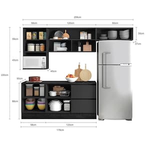 Cozinha Modulada 6 Pecas 258 Cm Etti Grafite Pln Grafite