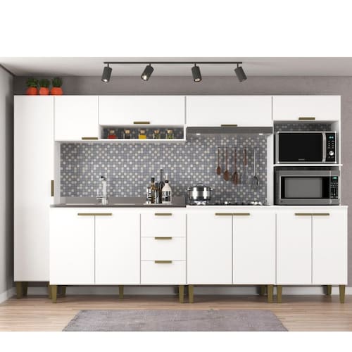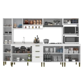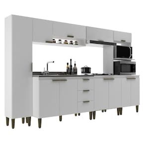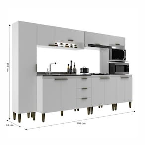 Características: Estrutura em MDP 6 Peças Corrediças metálicas Puxadores perfil Pés em polipropileno Altura dos pés: 17 cm Gaveta suporta até 5 kg Prateleiras suporta até 10 kg Não acompanha pia