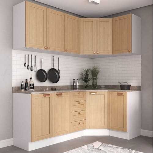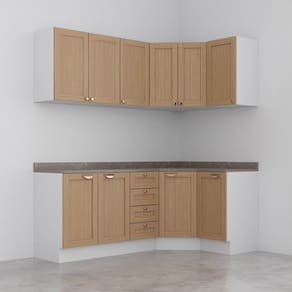 "A Cozinha Arizona é um conjunto de móveis com design clássico, projetada com materiais de alta qualidade e resistência, proporcionando durabilidade e praticidade no uso diário. Além disso, oferece versatilidade e funcionalidade, proporcionando opções de armazenamento adequadas que facilitam as tarefas cotidianas na cozinha. Possui portas com molduras, dobradiças com amortecimento e gavetas com corrediças telescópicas, com essa combinação de atributos a Cozinha Arizona é uma escolha prática e funcional para quem valoriza organização e estilo em sua casa. Para segurança, produto utiliza kit anti tombamento, sendo necessário parafusar à parede." Altura do Conjunto: 93 cm Ambiente: null Ambiente Principal: Cozinha Cor: Figueira Informação Complementar: 1x Aéreo de Canto Oblíquo Arizona Cabecasa Madeiramadeira Branco/Figueira Largura: 80 cm Altura: 69,6 cm Peso: 30 kg Profundidade: 80 cm Necessita Montagem: Sim