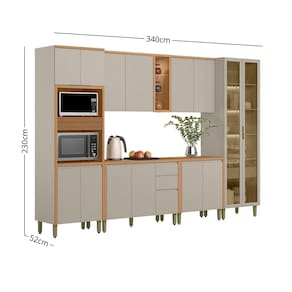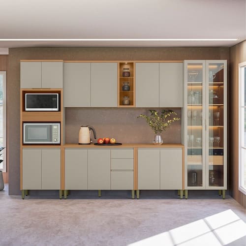 Cozinha Modulada 6 Peças com Tampo Em MDF Allure Linea Brasil, é a união perfeita entre sofisticação e funcionalidade. Produzida 100 em MDF, oferece alta durabilidade e um acabamento de qualidade superior. Seu design moderno é valorizado por dobradiças com amortecimento e puxadores embutidos, que garantem mais conforto e elegância no uso diário. O conjunto conta com uma cristaleira sofisticada com iluminação em LED e garrafeiro acoplado, além de uma torre com detalhe canelado e armário aéreo com nichos decorativos e iluminação por spot, que trazem charme ao ambiente.