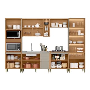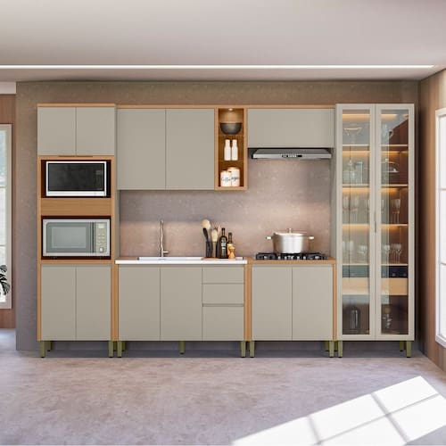 Cozinha Modulada 6 Pecas sem Pia Em MDF Allure Linea Brasil, oferece o equilibrio perfeito entre charme e funcionalidade em um design moderno e sofisticado. Produzida 100 em MDF, garante resistencia e um acabamento de alta qualidade. Conta com dobradicas com sistema de amortecimento, puxadores embutidos que reforcam o visual elegante, cristaleira com iluminacao em LED e garrafeiro embutido. A torre com detalhe canelado, o armario aereo com nichos decorativos e spot de luz, alem do balcao de 1,20m sem tampo, ideal para acomodar pia, completam o conjunto.