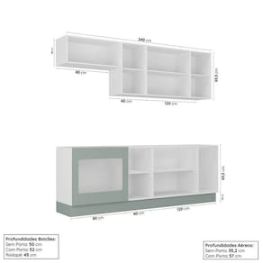 "A Cozinha Arizona é um conjunto de móveis com design clássico, projetada com materiais de alta qualidade e resistência, proporcionando durabilidade e praticidade no uso diário. Além disso, oferece versatilidade e funcionalidade, proporcionando opções de armazenamento adequadas que facilitam as tarefas cotidianas na cozinha. Possui portas com molduras, dobradiças com amortecimento e gavetas com corrediças telescópicas, com essa combinação de atributos a Cozinha Arizona é uma escolha prática e funcional para quem valoriza organização e estilo em sua casa. Para segurança, produto utiliza kit anti tombamento, sendo necessário parafusar à parede." Altura do Conjunto: 93 cm Ambiente: null Ambiente Principal: Cozinha Cor: Menta Informação Complementar: 1x Balcão para Pia 120cm sem Tampo Arizona Branco/Menta Largura: 120 cm Altura: 92,5 cm Peso: 51,3 kg Profundidade: 52 cm Necessita Montagem: Sim