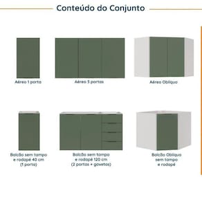 A Cozinha Ipanema é um móvel com design moderno, feito com material de qualidade para garantir alta durabilidade e resistência contra umidade. conferem versatilidade e praticidade no dia a dia, permitindo armazenar diferentes objetos. Uma opção de móvel prático e funcional para quem busca organização e estilo em sua casa Altura do Conjunto: 69.5 cm Ambiente Principal: Cozinha codigo_ean: 7909903343982 Cor: Verde Folha/Branco Cor do Produto: Verde Folha/Branco Informação Complementar: 1x Armário Aéreo 3 Portas Ipanema Cabecasa MadeiraMadeira Verde Folha/BrancoLargura: 120 cmAltura: 69,5 cmPeso: 31,43 kgProfundidade: 36,7 cmNecessita Montagem: Sim1x Armário Aéreo 1 Porta Ipanema Verde Folha/BrancoLargura: 40 cmAltura: 69,5 cmPeso: 12,8 kgProfundidade: 36,7 cmNecessita Montagem: Sim1x Balcão 1 Porta sem Tampo Ipanema Verde Folha/BrancoLargura: 40 cmAltura: 69,5 cmPeso: 15,23 kgProfundidade: 51,5 cmNecessita Montagem: Sim1x Balcão Pia 2 Portas 4 Gavetas sem Tampo Ipanema Verde Folha/BrancoLargura: 120 cmAltura: 69,5 cmPeso: 41,14 kgProfundidade: 51,5 cmNecessita Montagem: Sim1x Balcão Canto Oblíquo Sem Tampo Ipanema Verde Folha/BrancoLargura: 80 cmAltura: 69,5 cmPeso: 29,55 kgProfundidade: 80 cmNecessita Montagem: Sim1x Armário Aéreo Canto Oblíquo 2 Portas Ipanema Verde Folha/BrancoLargura: 80 cmAltura: 69,5 cmPeso: 34,18 kgProfundidade: 80 cmNecessita Montagem: Sim Linha ou Coleção: Ipanema - CabeCasa modular: Sim Possui Rodízio: Não