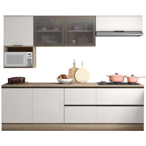 Cozinha Modulada 7 Pecas 258 Cm Etti Carvalho Oak Off White Pln - Branco