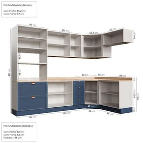 A Cozinha Modulada Arizona com tampo é formada por 3 Aéreos 3 Balcões e 1 Torre Quente, as portas e frentes de gaveta são feitas em MDF e possuem acabamento em Finish Foil com dobradiças com amortecimento, possibilitando fechamento soft closing. Possuem fita de borda em PVC, conferindo alta durabilidade e proteção contra umidade ao móvel. Acabamento da Porta: Finish Foil Acompanha Tampo: Sim Altura do Conjunto: 221 cm Ambiente Principal: Cozinha codigo_ean: 7908308770249 Cor: Branco/Azul Informação Complementar: 1x Balcão para Pia 120cm Arizona Branco/Azul Largura: 120 Altura: 92,5 cm Peso: 51.3 Profundidade: 52 Necessita Montagem: Sim