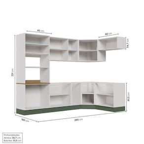 1x Balcão Canto Oblíquo sem Tampo com Rodapé Puxador 150mm Ipanema Verde Folha/Branco