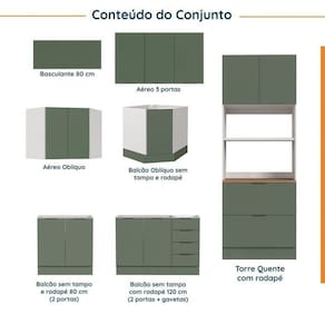 1x Torre Quente 2 Portas 2 Gavetas 2 Nichos com Rodapé Ipanema Verde Folha/Branco