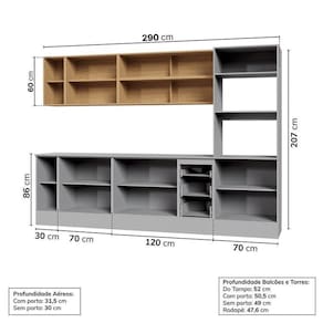 Cozinha Modulada 8 Peças 4 Aéreos 3 Balcões 1 Torre Quente Nara Cabecasa Madeiramadeira Avena/Cinza Claro - Marrom
