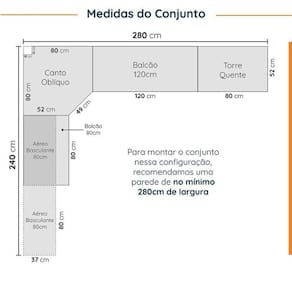 1x Balcão de Canto Oblíquo Arizona Branco/Menta Largura: 80 cm Altura: 93 cm Peso: 30,7 kg Profundidade: 80 cm Necessita Montagem: Sim