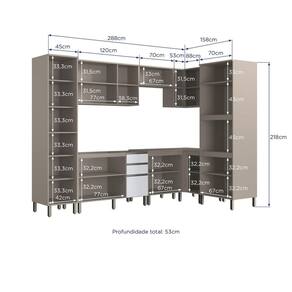 Medida de cada item (A x L x P): Balcã0 120: 120x51x86,5cm, Aéreo 120: 120x31x64,5 cm, kit forno: 70x53x202 cm, Paneleiro: 45x51x218cm, balcão 70: 70x53x89, aéreo 70: 70x31x34,5, Aéreo canto: 88x53x64,5 cm, Balcão canto: 88x53x89 cm