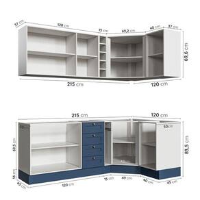 1x Balcão de Canto Oblíquo Sem Tampo Arizona Branco/Azul
