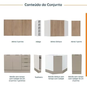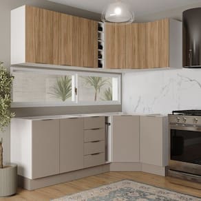 1x Balcão Canto Oblíquo sem Tampo com Rodapé Puxador 150mm Ipanema Cinza Trama/Branco