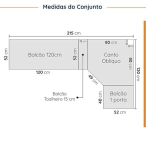 1x Armário Aéreo Canto Oblíquo 2 Portas Ipanema Acácia/Branco