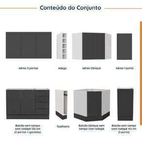 1x Balcão Canto Oblíquo sem Tampo com Rodapé Puxador 150mm Ipanema Grafite Trama/Branco