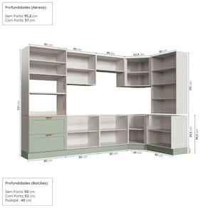1x Aéreo de Canto Oblíquo Arizona Branco/Menta Largura: 79,7 cm Altura: 69,6 cm Peso: 30 kg Profundidade: 79,7 cm Necessita Montagem: Sim
