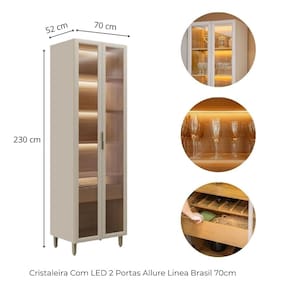 01 Cristaleira com LED 2 Portas Allure Linea Brasil 70cm