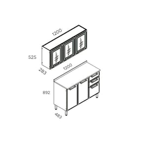 Dimensões(Cm): Comprimento(Profundidade): 48,3cm x Largura: 120cm x Altura: 59cm Material de Estrutura - 100% aço Tipo de Móvel - Apropriado p/ Uso de Pia - Gabinete com Tampo Tipo de Acabamento da Pintura - Fosca Tipo de Acabamento - Bordas Arredondadas Vantagens Extras dos Moveis de Cozinha - Vantagens dos Modulados Tipo de puxador - Estilizado Quantidade de Portas - 3 Portas de Abrir Quantidade de Gavetas - 2 Gavetas Tipo de Corrediça - Metálicas Certificação de Qualidade - Certificação de Qualidade Aprovada Garantia - 3 meses