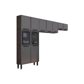Cozinha Compacta Estilo 3 Peças (2 Armários + 1 Paneleiro) CPT92 Cinza/Grafite - Bertolini