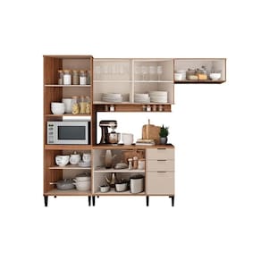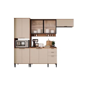 Cozinha Completa Alpha 4 Peças (2Aéreos+1Balcão+1TorreQuente) C4P195 Freijo/Off White - Carraro