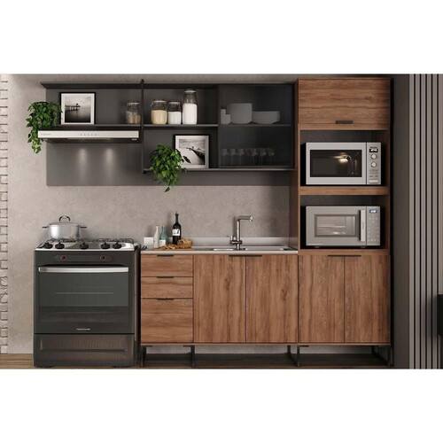 Cozinha Completa Alpha 6 Peças (1Aéreo+1Balcão+1TorreQuente+3Complementos) C6P107 Freijo/Cinza - Carraro Abaixo segue os produtos que compoem o KIT: