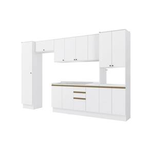 A perfeita união entre estilo e qualidade você encontra no Combo CB1082 da Cozinha Celeste da Kappesberg. Produzida em chapa MDF de 15mm, ela garante robustez, firmesa e qualidade, além de um acabamento perfeito. E com sete camadas de pintura na cor branco, tanto na parte interna quanto na externa, seu acabamento em brilho, além de combinar com todos os ambientes, aumenta a luminosidade do espaço, deixando sua cozinha perfeita. Com oito módulos mais tampo, o conjunto possui 2,30m de altura e 3,60m de largura, combinando estilo e qualidade para todos os ambientes. E com amplo espaço interno e módulo para forno ou microondas, você poderá organizar louças e mantimentos, além de preparar receitas especiais e deliciosas para receber sua família ou amigos. E para um melhor acabamento, a cozinha possui rodapés, mas também acompanha as ferragens para ser montada suspensa, do jeito que você preferir. Os diferenciais ficam por conta das dobradiças com amortecimento, garantindo um fechamento suave e sem ruídos, das corrediças telescópicas e os puxadores na cor dourada, complementando o estilo e qualidade do produto. Viva momentos especiais e renove seu espaço com a Cozinha Celeste da Kappesberg.