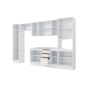 Acabamento: Pintura Brilho | Acabamento da Fita Borda: Papel | Cor: Branco | Corrediças: Telescópicas | Dobradiça: Com Amortecimento / Sem Amortecimento | Garantia: 3 meses para defeito de fabricação | Matéria-prima: MDF / MDP | Peso suportado por cada gaveta: 6 Kg | Peso suportado por cada prateleira: 7 kg | Puxadores: Alumínio / Metálicos / Puxadores de Metal e de Alumínio | Quantidade de gavetas: 3 | Quantidade de portas: 1 / 3 | Quantidade de prateleiras: 1 / 2 / 4 / 5 | Sistema de montagem: Parafuso Philips | Tipo de porta: Bater