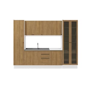 A perfeita união entre estilo e qualidade você encontra no Combo CB1085 da Cozinha Celeste da Kappesberg. Produzida em chapa MDF de 15mm, ela garante robustez, firmesa e qualidade, além de um acabamento perfeito. E com sete camadas de pintura, tanto na parte interna quanto na externa, a caixaria conta com acabamento em brilho na cor branca, enquanto que as frentes, com pintura touch na cor nogueira, possui a textura dos veios da madeira, uma combinação aconchegante e linda, deixando sua cozinha perfeita. Com seis módulos mais tampo, o conjunto possui 2,30m de altura e 3,02m de largura, combinando estilo e qualidade para todos os ambientes. Esse conjunto ainda conta com cristaleira, com moldura e vidro reflecta, garantindo sofisticação e um detalhe único ao projeto. E com amplo espaço, você poderá organizar louças e mantimentos, além de preparar receitas especiais e deliciosas para receber sua família ou amigos. E para um melhor acabamento, a cozinha possui rodapés, mas também acompanha as ferragens para ser montada suspensa, do jeito que você preferir. Os diferenciais ficam por conta das dobradiças com amortecimento, garantindo um fechamento suave e sem ruídos, das corrediças telescópicas e os puxadores na cor dourada, complementando o estilo e qualidade do produto. Viva momentos especiais e renove seu espaço com a Cozinha Celeste da Kappesberg.