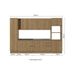 A perfeita união entre estilo e qualidade você encontra no Combo CB1081 da Cozinha Celeste da Kappesberg. Produzida em chapa MDF de 15mm, ela garante robustez, firmesa e qualidade, além de um acabamento perfeito. E com sete camadas de pintura na cor nogueira, tanto na parte interna quanto na externa, seu acabamento touch, com a textura dos veios da madeira, além de combinar com todos os ambientes, garante a sensação de conforto e aconchego ao espaço, remetendo aos tons da natureza e deixando sua cozinha perfeita. Com oito módulos mais tampos, o conjunto possui 2,30m de altura e 3,40m de largura, combinando estilo e qualidade para todos os ambientes. E com amplo espaço interno, você poderá organizar louças e mantimentos, além de preparar receitas especiais e deliciosas para receber sua família ou amigos. E para um melhor acabamento, a cozinha possui rodapés, mas também acompanha as ferragens para ser montada suspensa, do jeito que você preferir. Os diferenciais ficam por conta das dobradiças com amortecimento, garantindo um fechamento suave e sem ruídos, das corrediças telescópicas e os puxadores na cor dourada, complementando o estilo e qualidade do produto. Viva momentos especiais e renove seu espaço com a Cozinha Celeste da Kappesberg.