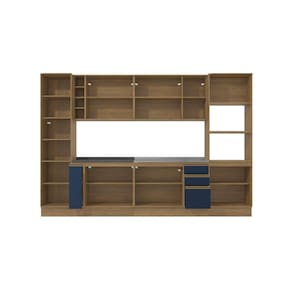 1x Balcão de Pia com 2 Portas e 3 Gavetas 120cm Nogueira/Azul;