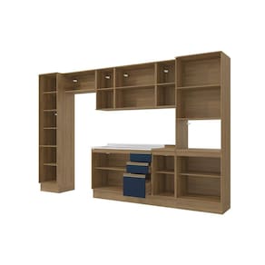 1x Balcão de Pia com 2 Portas e 3 Gavetas 120cm Nogueira/Azul;