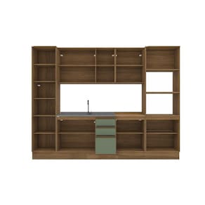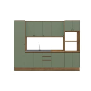 1x Balcão de Pia com 2 Portas e 3 Gavetas 120cm Nogueira/Verde Oliva;