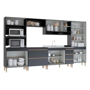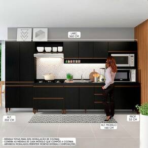 Cozinha Modulada Com Balcão Pia Sabrina 6pçs Mdp Menu Móveis Preto