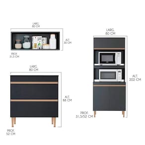 Dimensoes Nicho Superior Forno do Armario Torre Quente Forno Micro-ondas Sabrina 80x202cm: