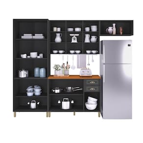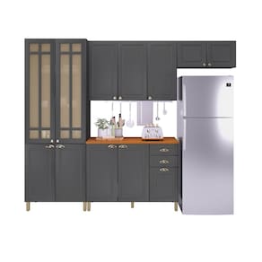 Cozinha Modulada Compacta 4 Peças 12 Portas 2 Gavetas Paris Cinza - Preto