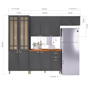 Medida de cada item (A x L x P): Paneleiro Duplo: 226x70x52cm | Armário 120cm: 81x120x32cm | Balcão 120cm com Tampo: 92x120x53cm | Armário 80cm: 36x80x32cm