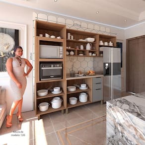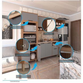 Desenvolvida com materiais de excelencia, a Cozinha Aspen oferece excelente distribuicao de espaco interno para sua organizacao. E fabricada em 100 MDP e possui acabamento das portas em BP oferecendo durabilidade, resistencia a riscos e facil manutencao. Conta com puxadores tipo Alca em Aluminio Preto dando um toque especial de classe e sofisticacao ao ambiente.