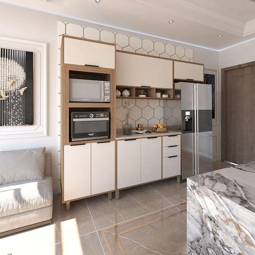 Ambiente Composto por - 1 Paneleiro Torre Quente 70cm 3 Portas com Espaço para Forno e Micro-ondas Aspen Luciane Móveis 221 x 70 x 51,50 -A x L x P - cm- - 1 Balcão de Cozinha para Pia 120cm 2 Portas e 3 Gavetas sem Tampo Aspen Luciane Móveis 87 x 120 x 51,50 -A x L x P - cm- - 1 Tampo para Balcão 120cm Aspen Luciane Móveis 8,50 x 120 x 53 -A x L x P - cm- - 1 Armário Aéreo de Cozinha 120cm 1 Porta Basculante com Nichos Aspen Luciane Móveis 73 x 120 x 31,50 -A x L x P - cm- - 1 Armário Aéreo de Cozinha 80cm 1 Porta Basculante Aspen Luciane Móveis 36,50 x 80 x 31,50 -A x L x P - cm-