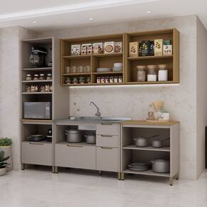 Cozinha Modulada Compacta 5 Pecas com Espaco para Micro-ondas sem Tampo de 120 Lumina Luciane Moveis